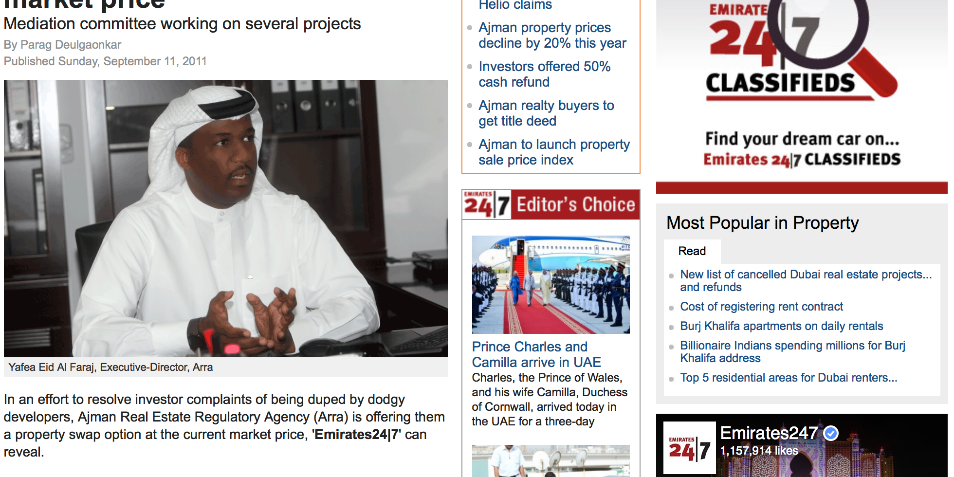 In an effort to resolve investor complaints of being duped by dodgy developers, Ajman Real Estate Regulatory Agency (Arra) is offering them a property swap option at the current market price, ‘Emirates24|7‘ can reveal.